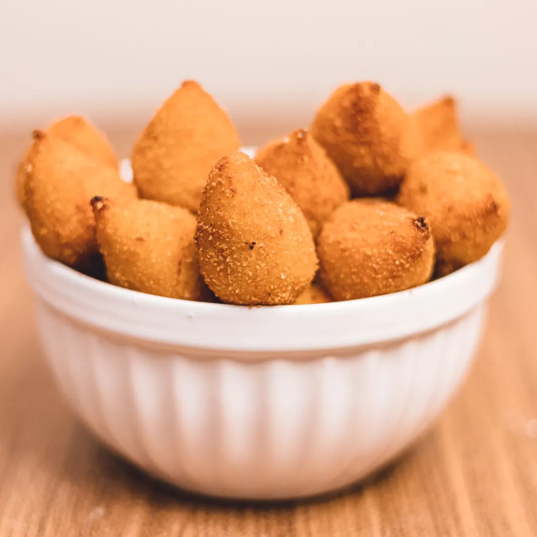 Para os amantes de Queijo, essa é a nossa Vedete de 3 queijos, são eles: Mussarela, Parmesão e Provolone. Uma bolinha completamente feita de queijo, sem nenhuma massa. Crocante por fora e derretida por dentro. Um espetáculo!